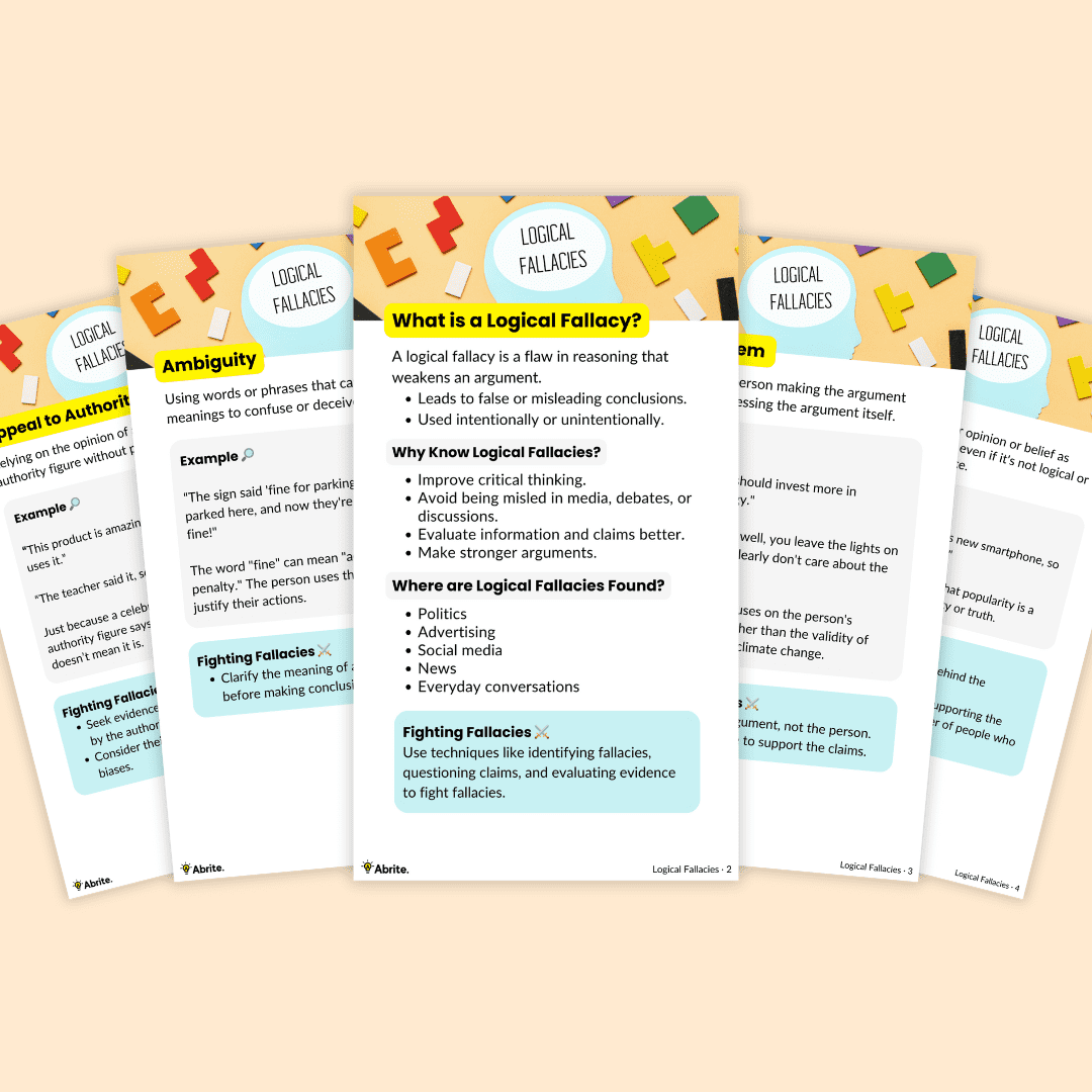 Give students the tools to think critically with our Logical Fallacies Mini Slides 🧠✨ These bite-sized, engaging slides break down common reasoning errors and build stronger critical thinking skills. Perfect for middle and high school students working on essays or learning how to argue effectively.